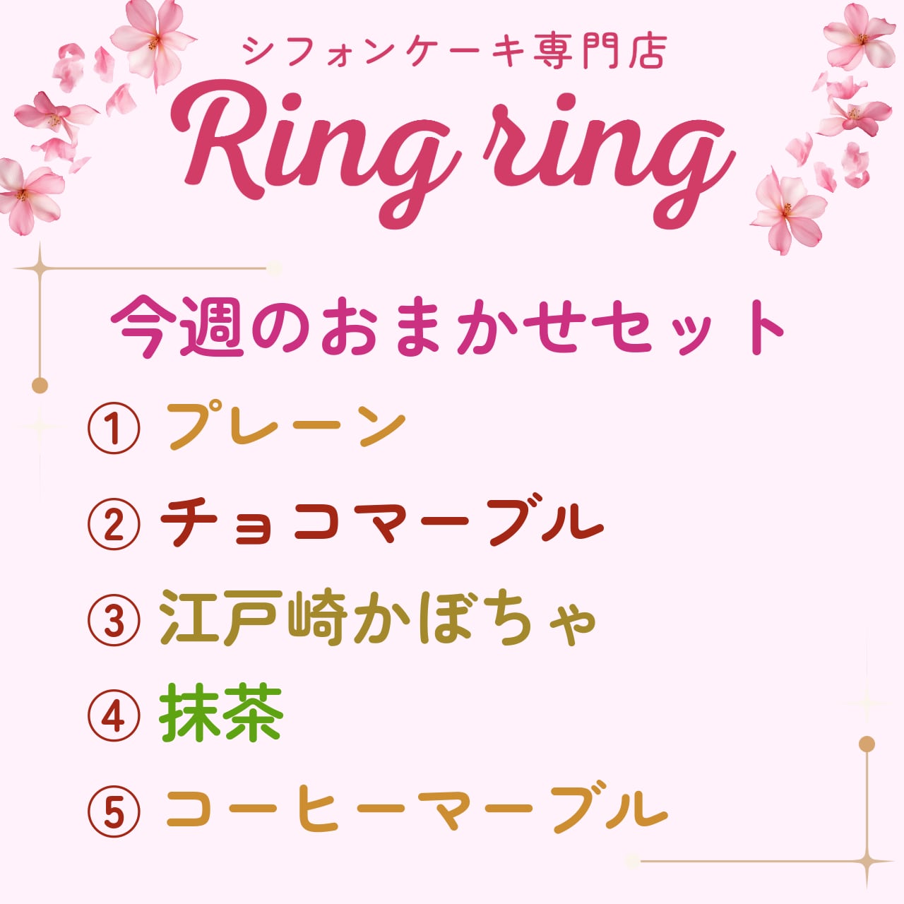 【販売終了】第2弾【おまかせセット】(5個入り)地産地消・龍ケ崎市産米粉で焼いたシフォンケーキ